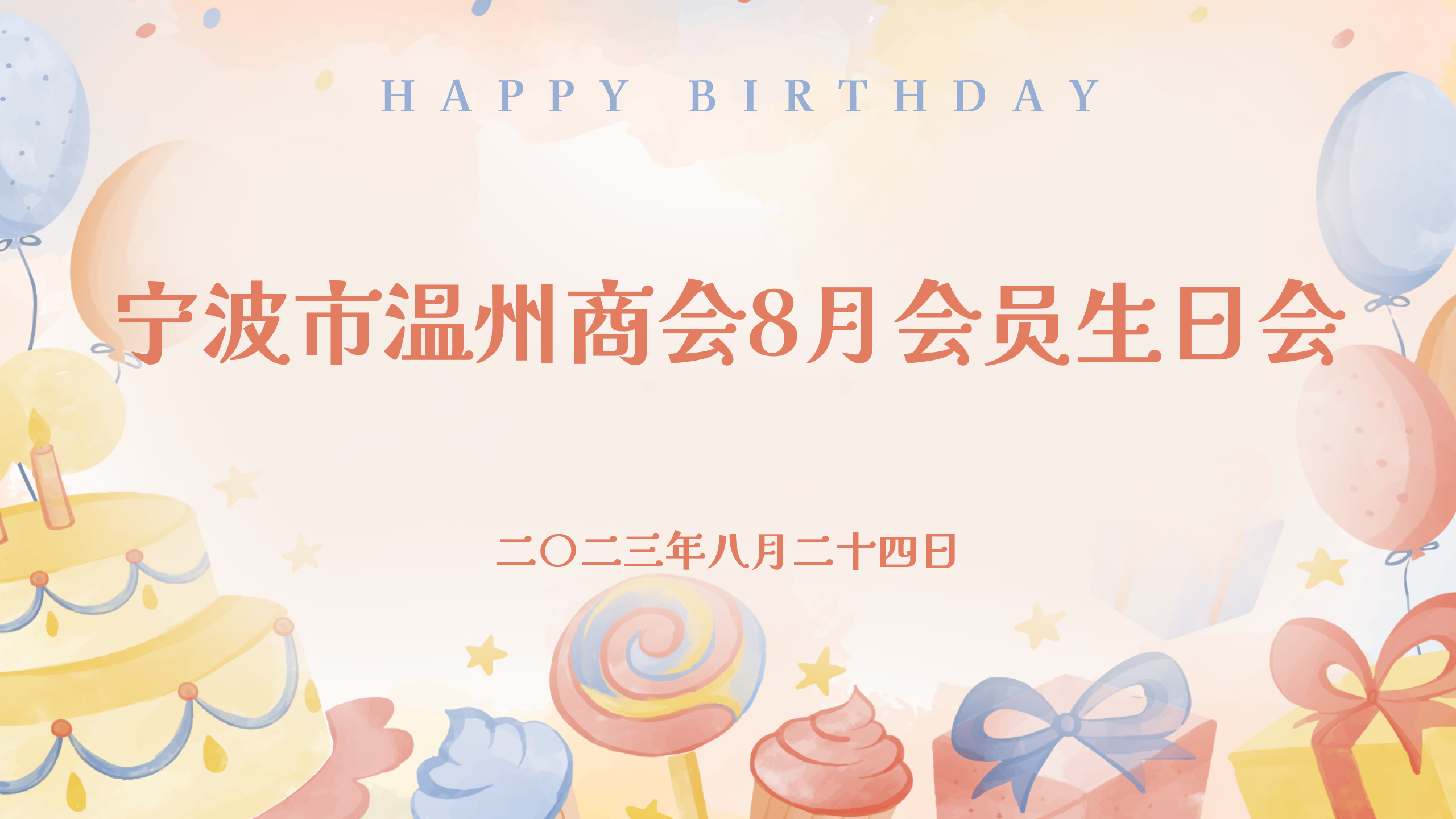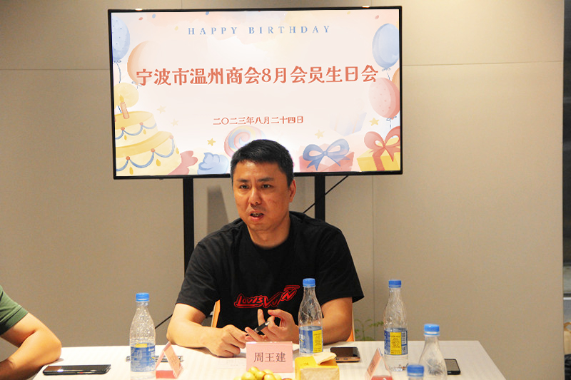 2023年8月24日下午,寧波市溫州商會8月生日會員相約在副會長齊建環企業—寧波萬宏房地產有限公司,恭賀生日、交流學習、暢敘鄉情、共度美好時光。本次生日會由常務副會長周王建主持。