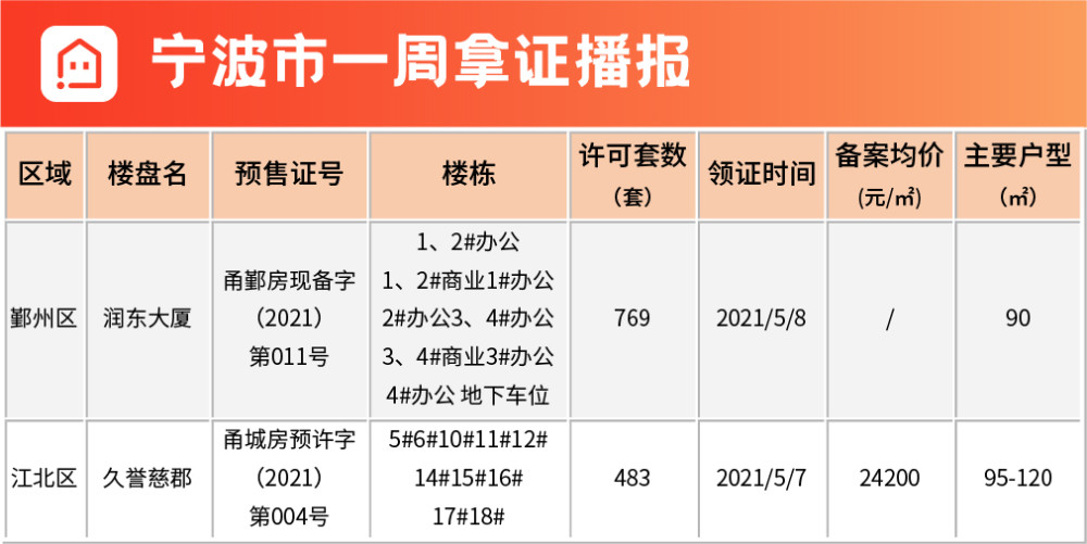 上周寧波共2個樓盤取得預(yù)售證,入市房源共計1252套。