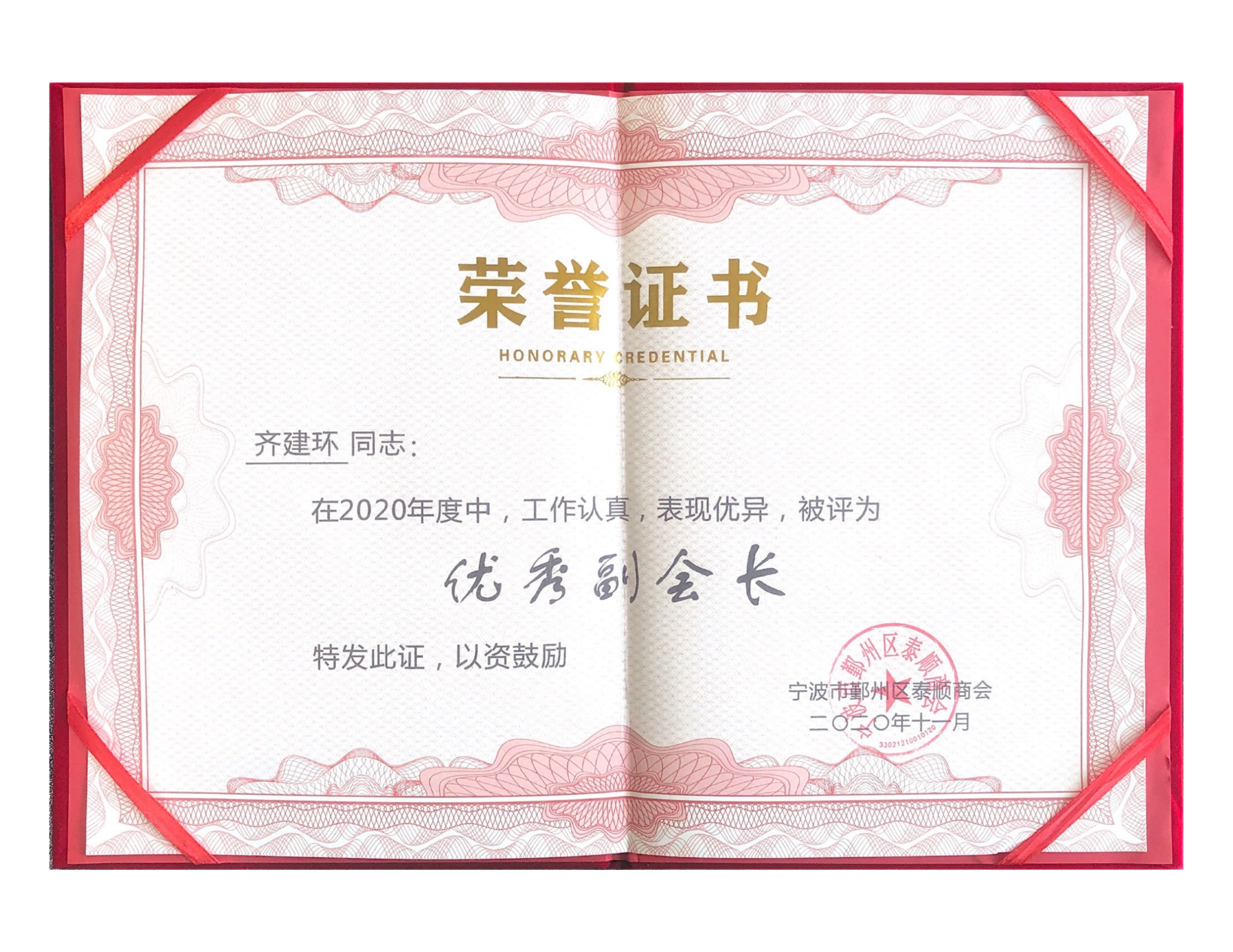 齊建環先生榮獲2023年度溫州商會副會長